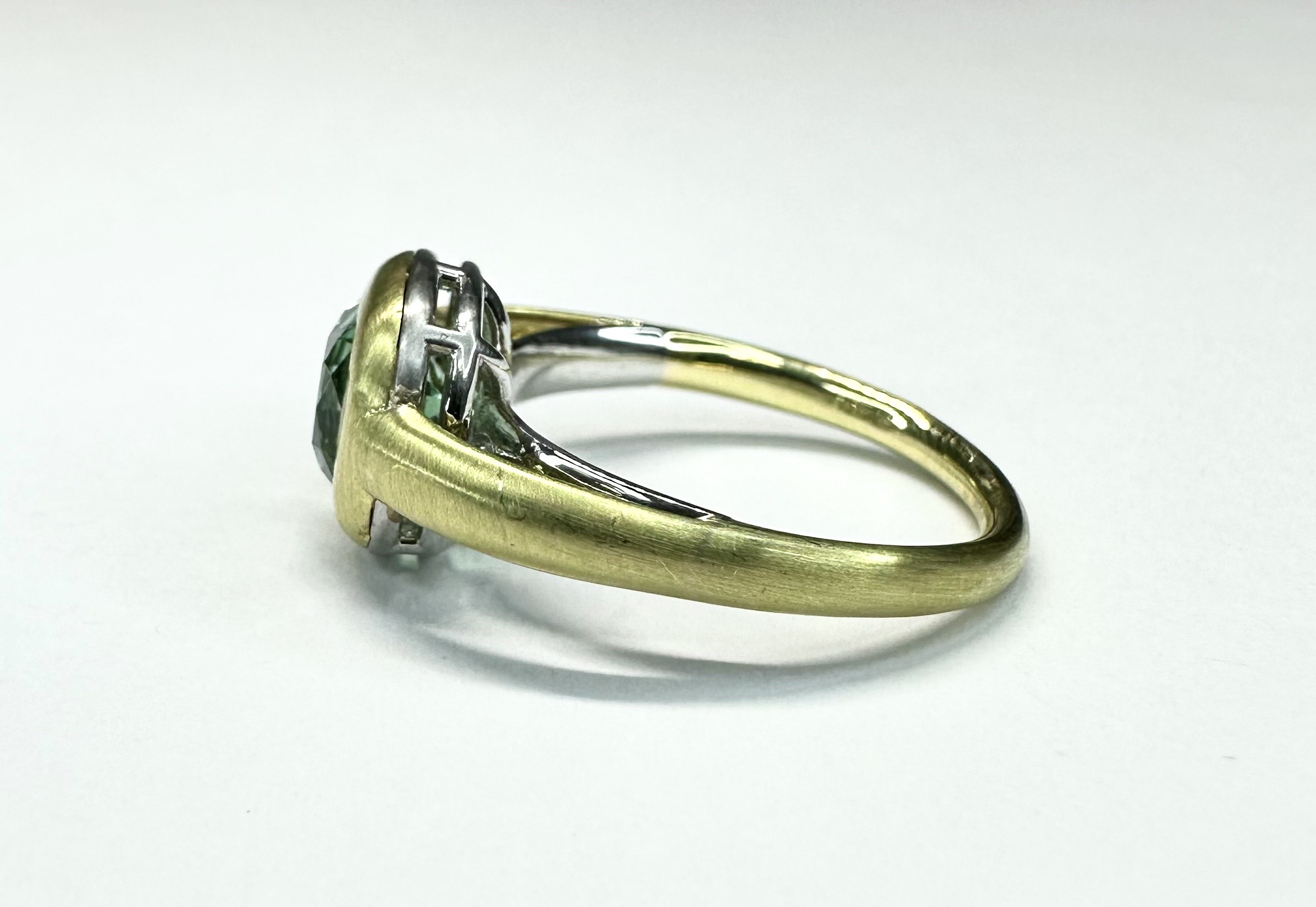 RING A-1090 – Green Tourmaline in 18k Yellow and White Gold