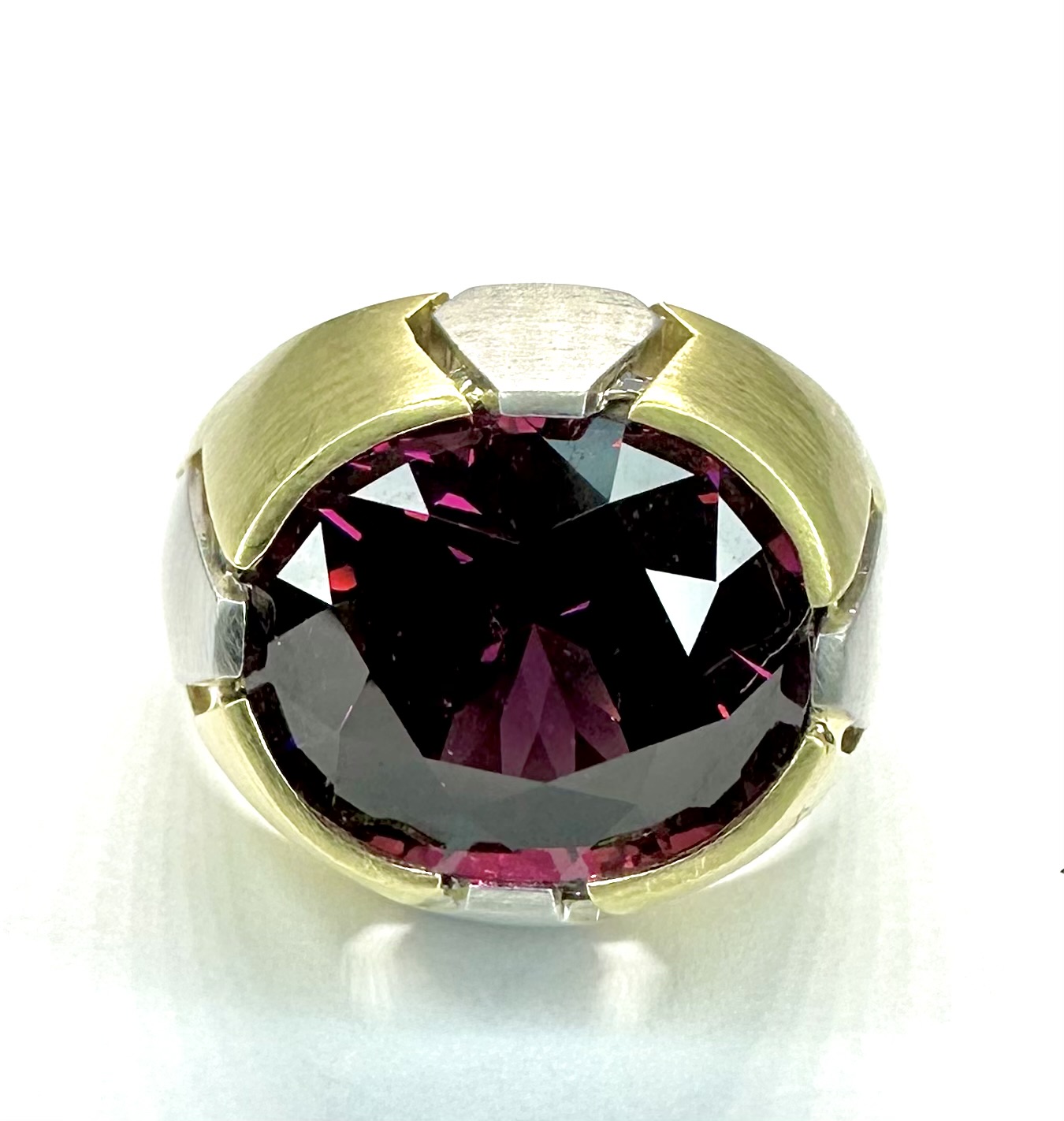 RING A-1070 – Garnet in 18k Yellow and Platinum